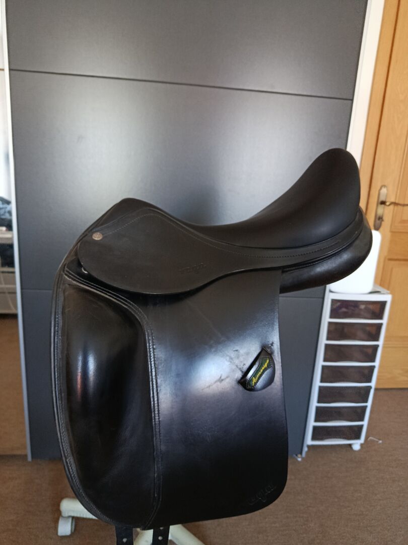 Amerigo dressyrsadel - Hej på er, Vi säljer en begagnad Amerigo sadel då den endast är lämplig för smalare hästar och vår häst har blivit väldigt barock och därför inte längre passar honom.