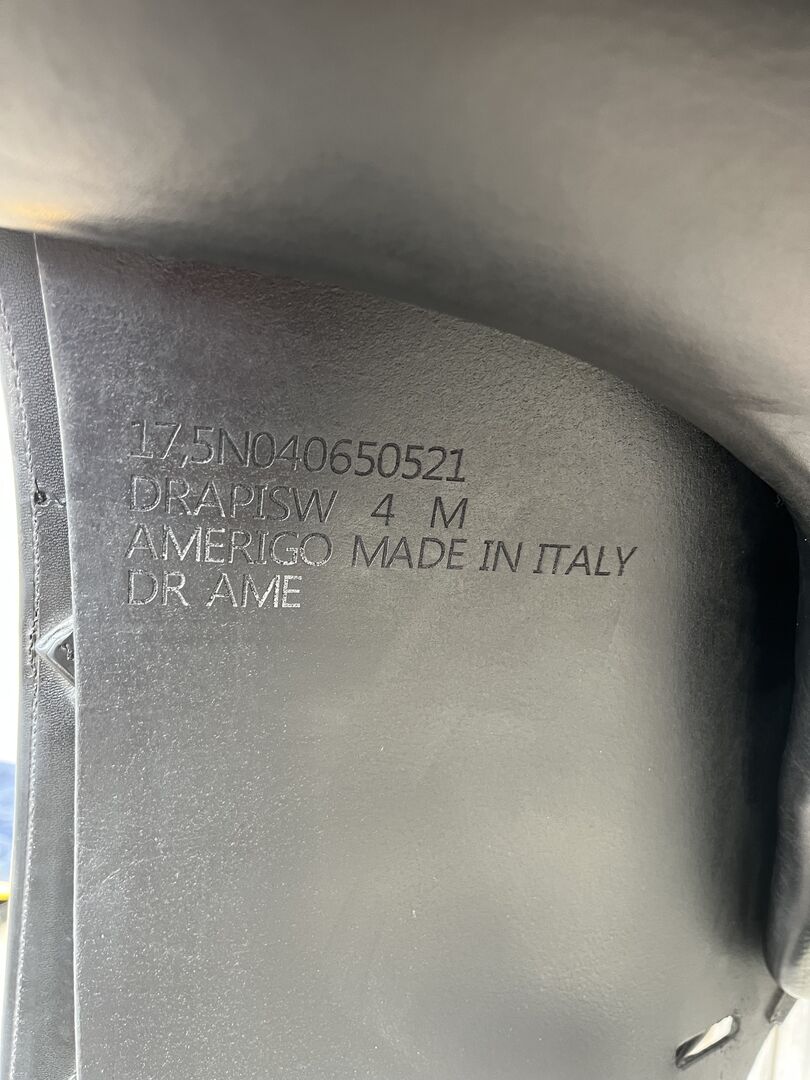 Amerigo dressyrsadel Pinerolo 17,5 - Välskött, begagnad dressyrsadel som jag bara ger bort för att den inte längre passar mitt sto. Ullen byttes helt ut för ett år sedan. De tre sadelgjordsbanden tillåter individuell sadelgjutning efter behov. Sadeln har alltid förvarats och vårdats på en torr plats.
