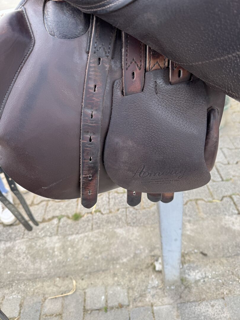 Amerigo Farouche Pinerolo 18 tums hoppsadel - Jag säljer en hoppsadel i bra skick från Amerigo. Det är Farouche-modellen i 18 tum med en L-klaff. Kammarbredden M -0,5 motsvarar en 31.