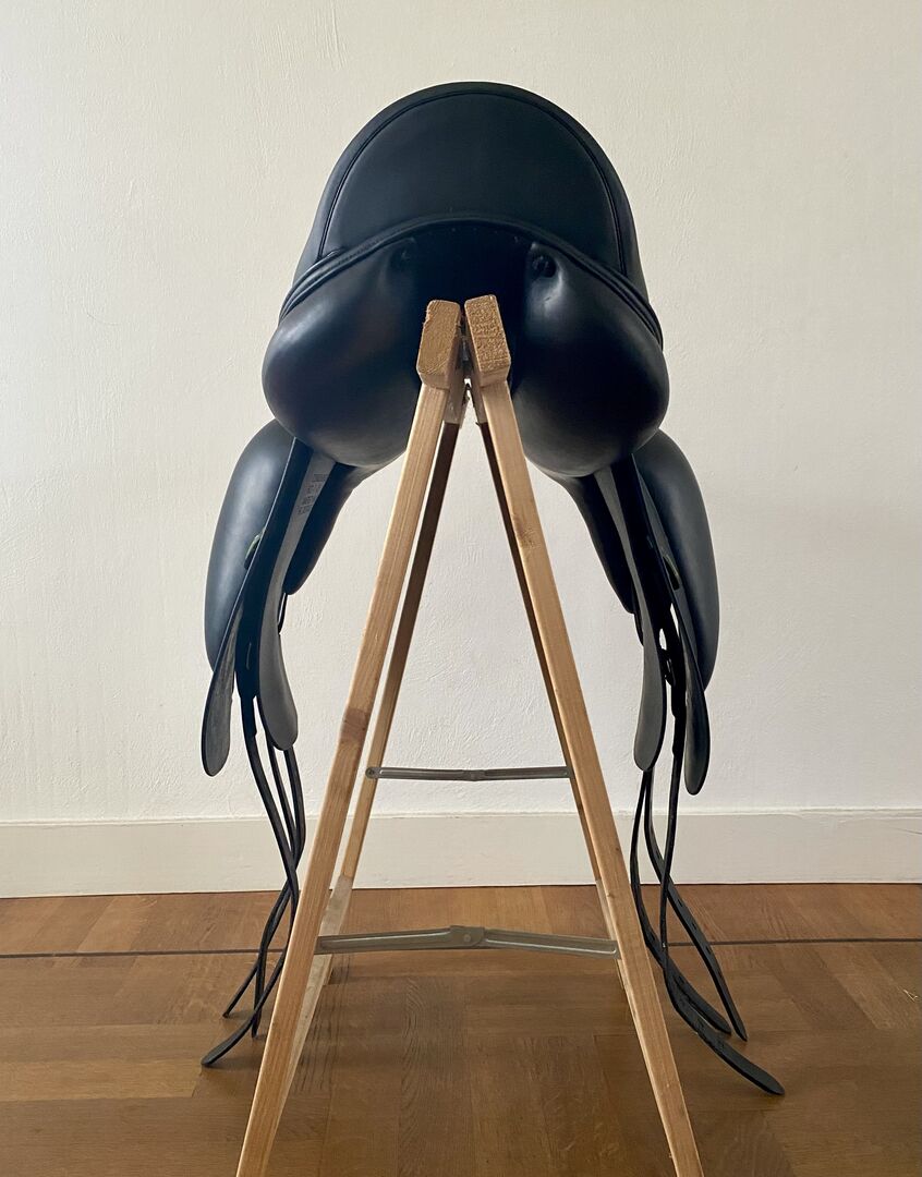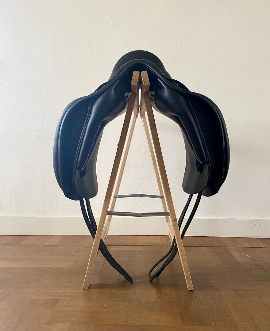 Vacker dressyrsadel från lyxmärket Amerigo, utvecklad för den moderna sporthästen.