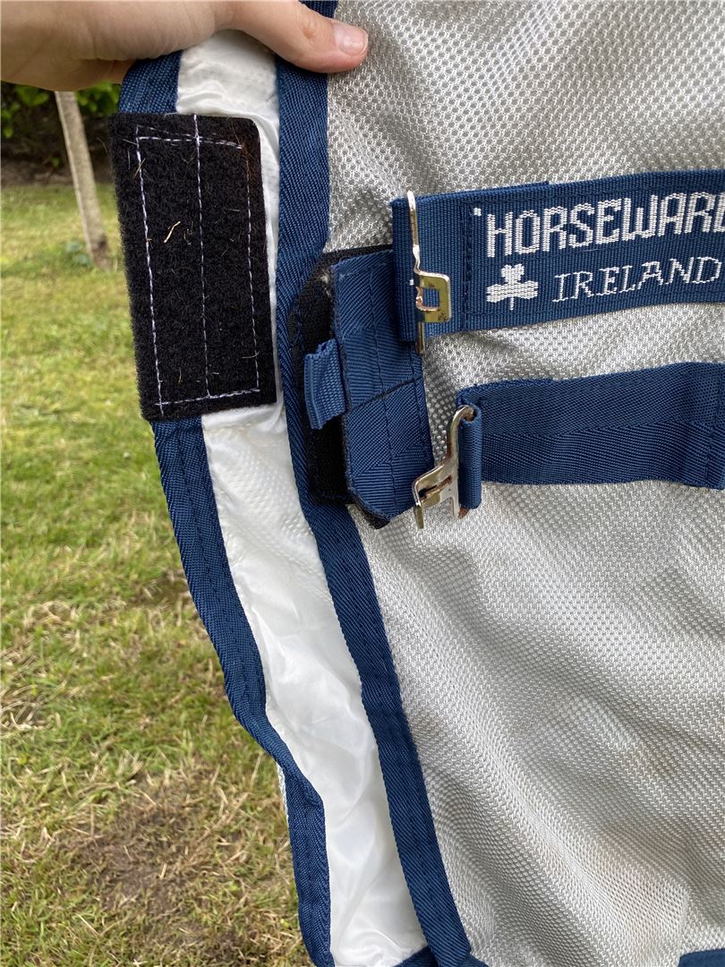 Används under en betessäsong, lite rost på spännena och en liten söm har öppnats upp som kan ses på bilderna.