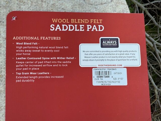 anatomisk ullfiltdyna från Weaver - Ny ullfiltdyna från Weaver (se bilder) i beige. Den har bara lagts under sadeln en gång för ett prov, men inte ridits. Tyvärr går det inte att undvika hår.