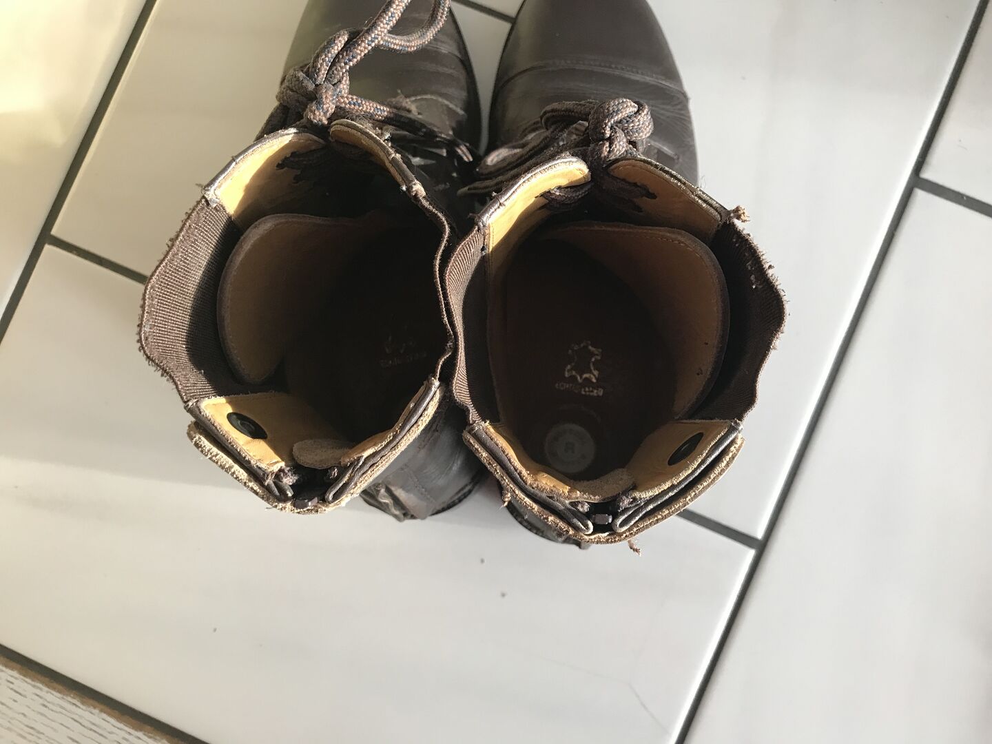 Ankelstövlar för ridning med dragkedja och snörning - Välanvända ridstövlar, men inget trasigt, bara en ny gummiklack skulle behövas. Snörningen gör dem superjusterbara och dragkedjan på baksidan gör dem lätta att ta på. Matchande chaps i en annan auktion.