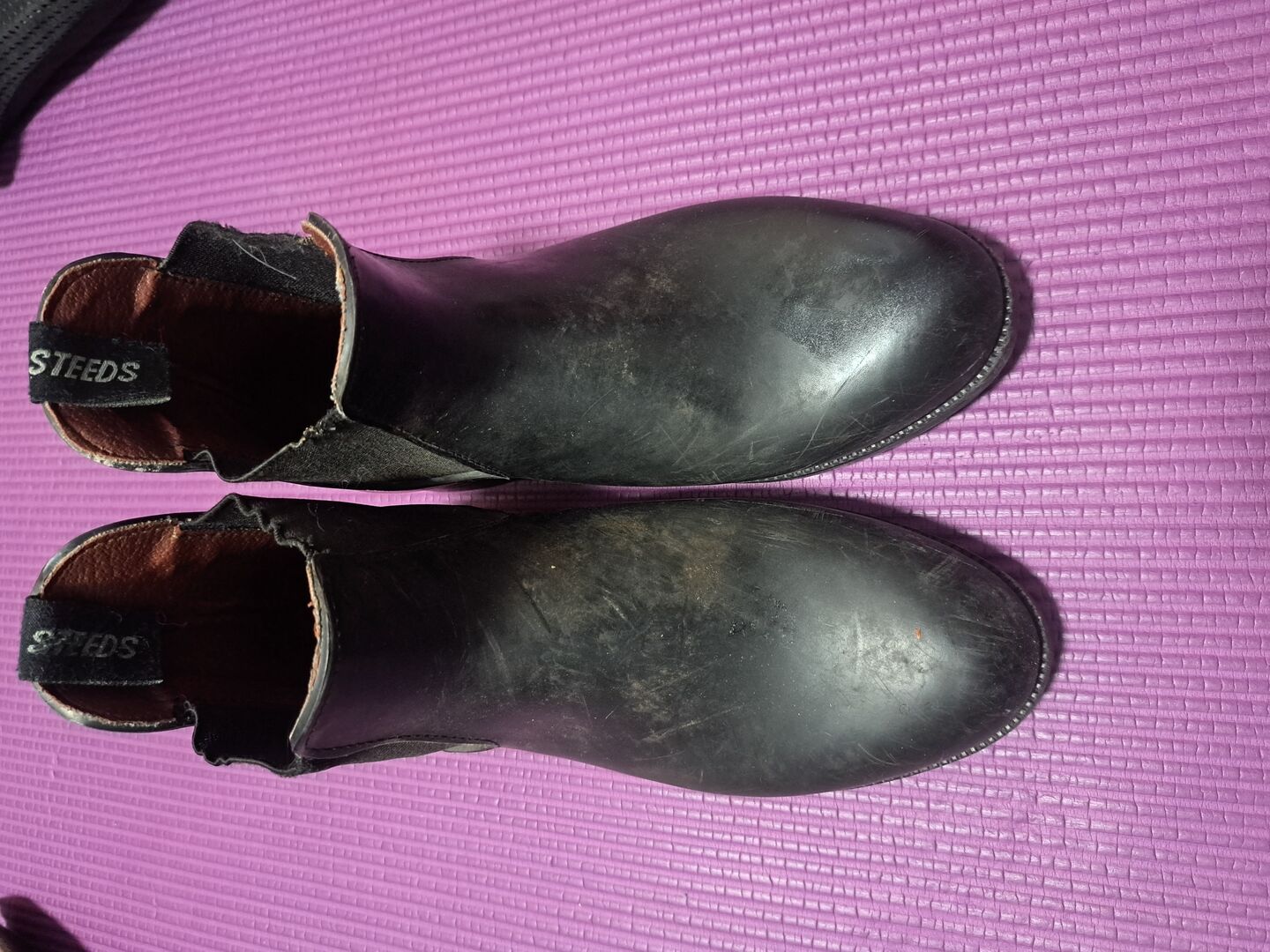 Ankelstövlar från Steeds storlek 34 - Jag säljer dessa ankelstövlar i storlek 34 från Steeds. De är svarta och har blivit väl slitna, vilket du kan se men de är fortfarande fullt funktionella.