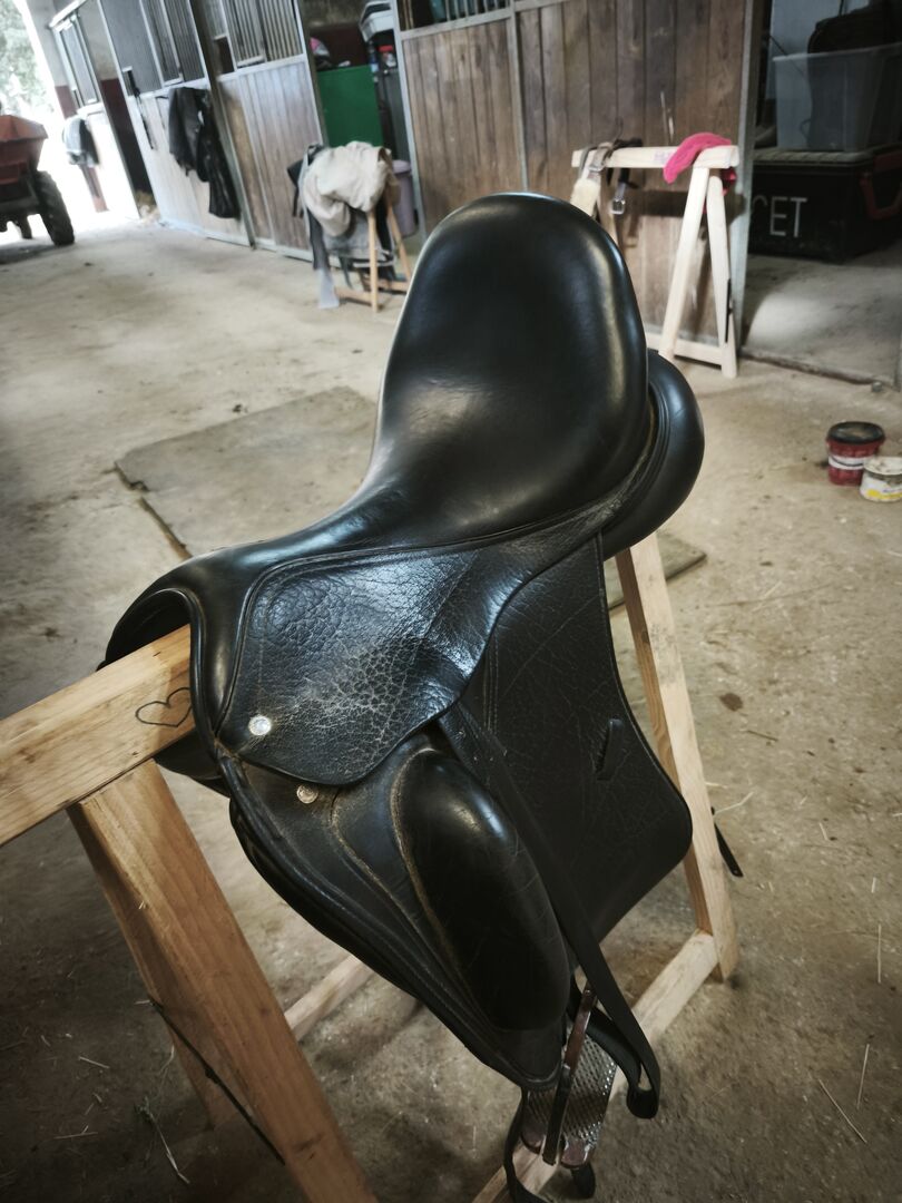 Den har några normala användningsdetaljer (små estetiska saker), men inget som påverkar dess funktion eller dess struktur. Den har alltid varit väl omhändertagen. ⚠️ Viktigt: 👉 Stigbyglar och lager är INTE till salu, bara sadeln. För mer information, foton eller eventuella frågor, meddelande utan förpliktelse.