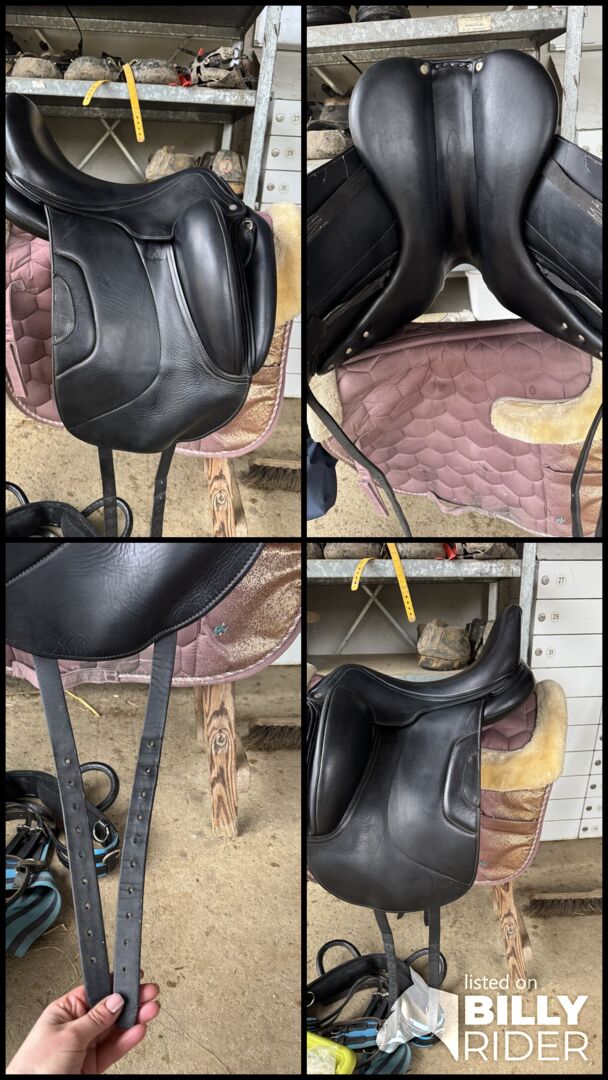 Varumärke: Antarès Modell: Tempo Sits: 17,5" Färg: svart knä rullar: N3 Sadelns nummer: 210810 Sadelklaff: mono klaff paneler: franska paneler Sits: djup Gördel: långa gördelremmar