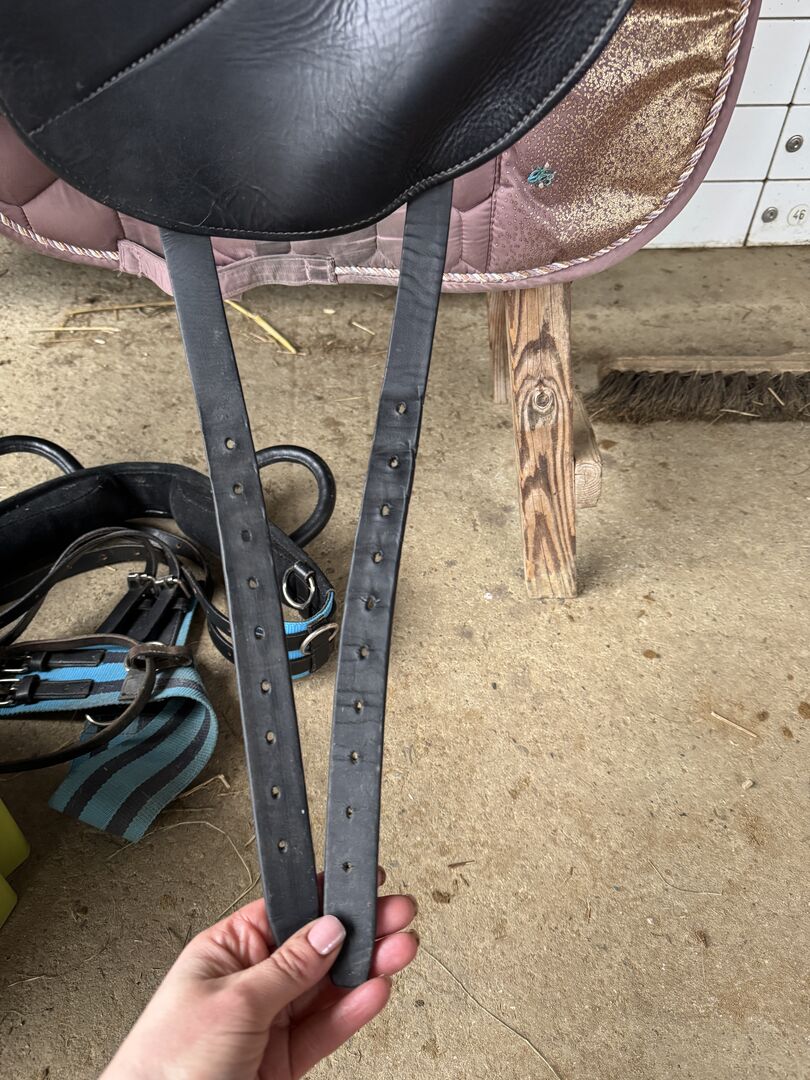 Passform/beskrivning: De V-formade remmarna kan justeras flera gånger, dvs. sadelgjordsvinkeln kan ändras (sadelns balans och tryckpunkt kan ändras genom sadelgjorden).
