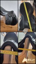 Antares France black 17.5 inch saddle. This is a very comfortable saddle to ride in. I had it for a 15.3 medium build high wither horse. It is missing one logo button on flap and one girth guard.