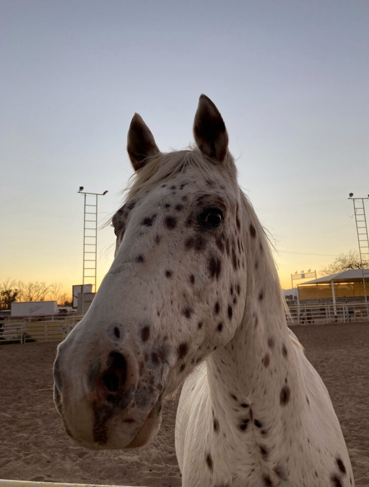 Han går in i arenan, in i fältet och älskar markarbete. Han har hjärtat på rätta stället. Jag tog med honom från USA och han är också registrerad hos Appaloosa Horse Club USA.