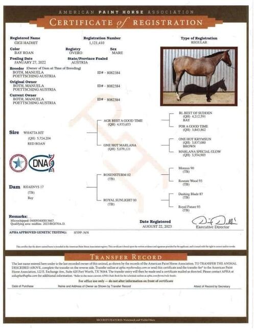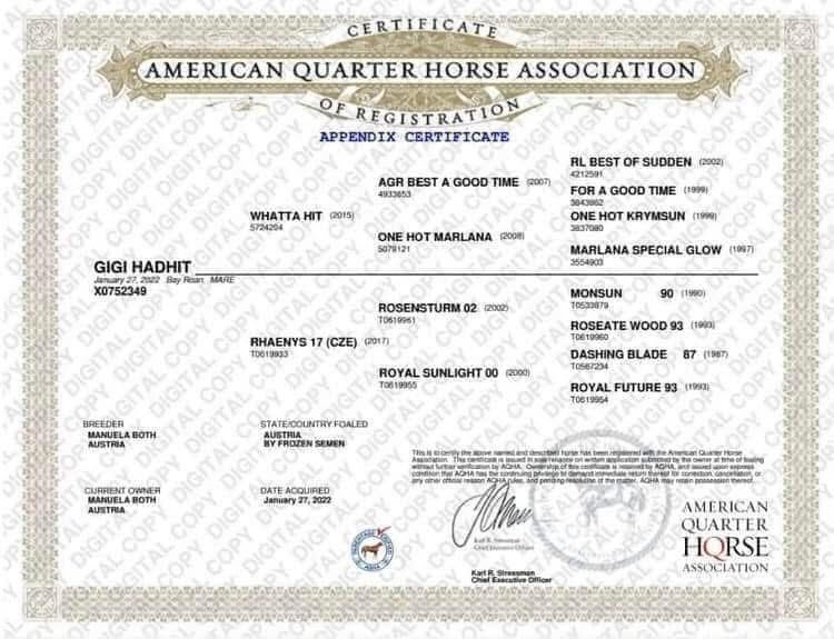 Fader: Whatta Hit - Quarter Horse - Höjd: 1,60 - 8 paneler testade och alla ej godkända