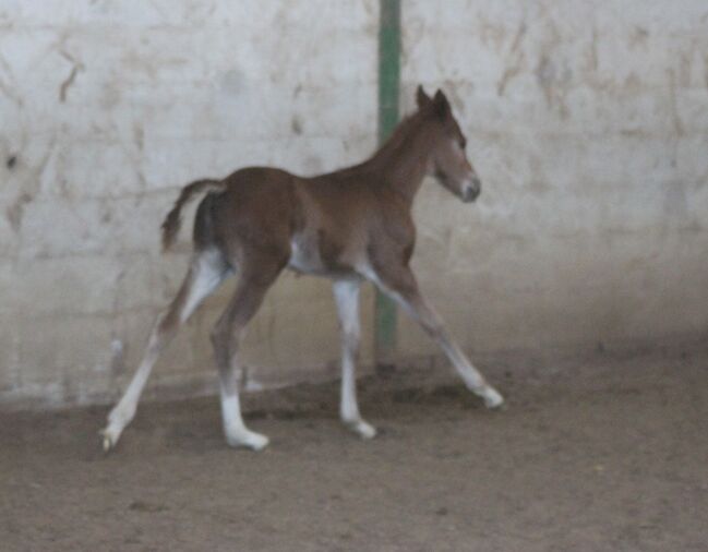 En absolut blickfångare. Vi är långa - förmodligen 1,60 - 1,65 (hans två helbröder är redan strax under 1,60 vid 3 och 4 års ålder) Raka ben, kort rygg, bra konformation, mega mover, mycket nyfiken och öppen natur!