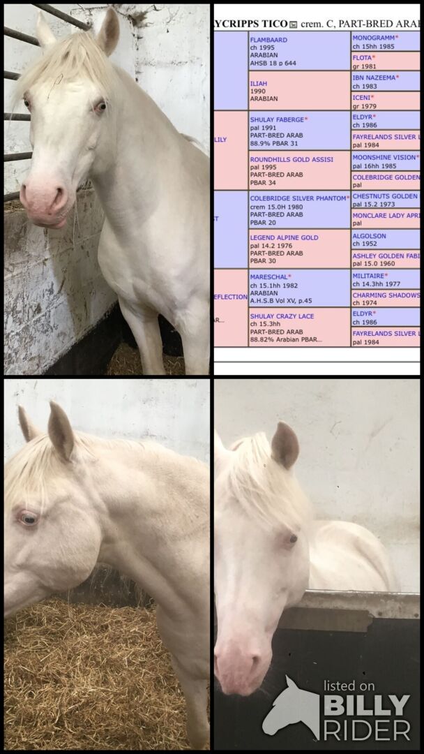 Well behaved Pb Arabian Stallion 79.41%. Tested clear on all disorders for breeding purposes. Double cream (Cr Cr) has produced multiple Palomino foals. Tico stands at 14.2hh but has produced foals exceeding 16hh. Looking for a 10* home, as I plan my retirement. Highest offer £ Stoke-on-Trent