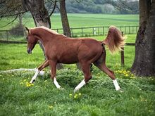 Gotta Cat Gun - eine außergewöhnlich typvolle Quarter Horse Stute, geboren am 10.03.2024, sorrelfarben und mit einem erwarteten Endmaß von ca. 145-150 cm - ein echter Blickfang mit ihrem blauen und braunen Auge sowie ihren ausdrucksstarken Abzeichen. Sie überzeugt durch einen korrekten Körperbau, ein starkes Fundament und eine schöne, ausgewogene Bemuskelung. Honey ist gesund, regelmäßig entwurmt, geimpft und stets vorbildlich beim Tierarzt und Hufschmied. Sie wächst artgerecht im Herdenverband im Offenstall mit Weide auf und zeigt dort eine hervorragende Sozialverträglichkeit. Beste Fütterung, Mineralien und eine liebevolle tägliche Betreuung sorgen dafür, dass sie sich optimal entwickelt. Im Charakter lässt Gotta Cat Gun keine Wünsche offen: Sie ist freundlich, offen, menschenbezogen und gleichzeitig aufgeweckt, hochintelligent und selbstbewusst. Die Stute schmust gerne, zeigt viel Herz und eine beeindruckende Reaktionsschnelligkeit. Ihre Bewegungen sind geschmeidig und katzenartig - ein deutlicher Hinweis auf ihr enormes Talent im Cutting. Schon jetzt nutzt sie jede Gelegenheit, ihr natürliches Cow Sense zu zeigen. Dank täglichem Handling ist sie absolut zuverlässig im Umgang: Sie beherrscht das komplette Fohlen-1x1, vom Führen über Anbinden, Putzen und Waschen bis hin zu Hängerfahren, Tierarzt und Hufschmied. Auch Kinder können Honey problemlos führen. Ihrem Alter entsprechend wurde sie noch nicht weiter gearbeitet. Mit ihrer hochinteressanten Abstammung (Metallic Cattack x Spooks Gotta Gun), ihrem Talent und ihrem starken Charakter bringt sie alles mit, was man sich von einem vielversprechenden Nachwuchspferd für den Cutting Sport wünscht. Gleichzeitig ist sie ein attraktives Prospect für die Show, Freizeit und später die Zucht. Gotta Cat Gun besitzt AQHA-Papiere sowie einen DQHA-Equidenpass. Eine bestehende Lebensversicherung mit dem Baustein "Unbrauchbarkeit" kann auf Wunsch übernommen werden.