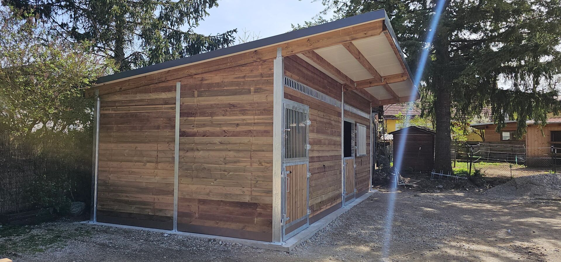 Högvärdiga utomhusboxar för hästar, robusta, långlivade och speciellt konstruerade för höga vind- och snölaster. Perfekt för paddockar, ridhus, privata stall och utomhusområden.
