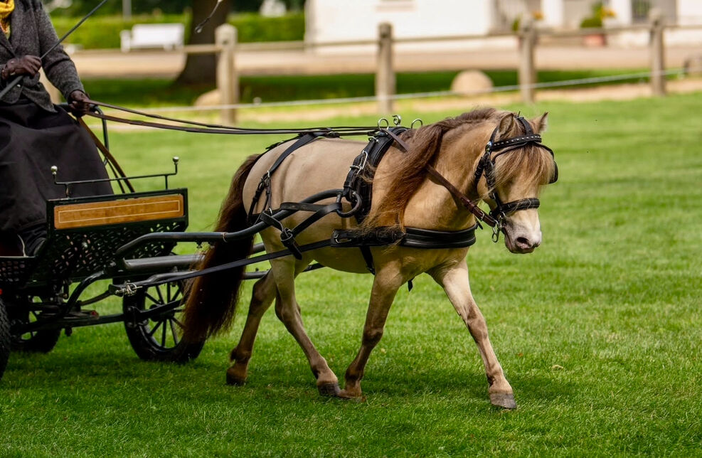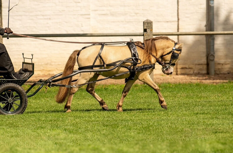 Med sin kompakta längd på 95 cm kombinerar DTL Drops Champagne uthållighet, arbetsvilja och starka rörelser med en exceptionellt lugn natur. Han är klar i huvudet, alltid motiverad framför vagnen och så väluppfostrad att även barn kan hantera honom säkert. Genetiskt har han testats optimalt: Skelettavatism (SA) negativ och dvärgväxt (ACAN) negativ.