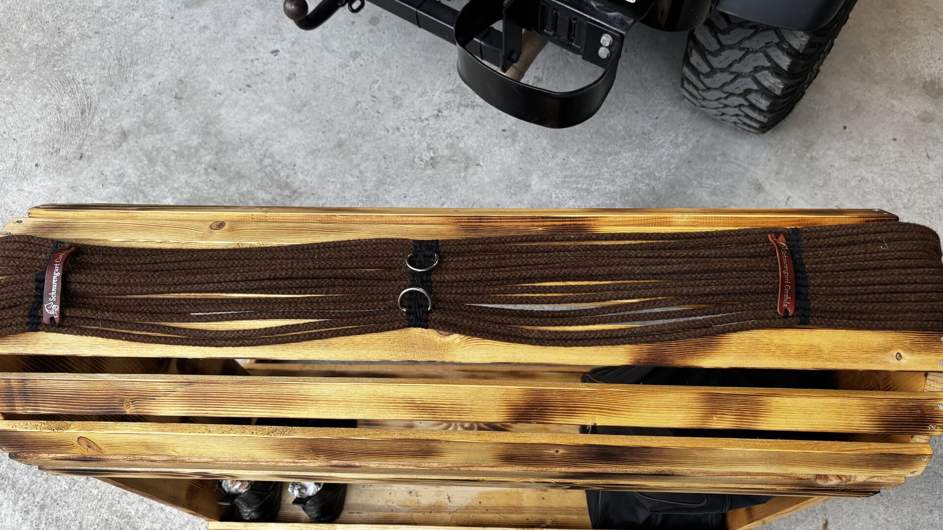 Bälte med cordulasnöre 135 cm - Jag säljer en lite begagnad sladdgjord från Cordula, eftersom jag har bytt till en annan sadel behöver jag den inte längre. Den är brun med svart vävningsfärg. Längd 135 cm NP är 290 Euro