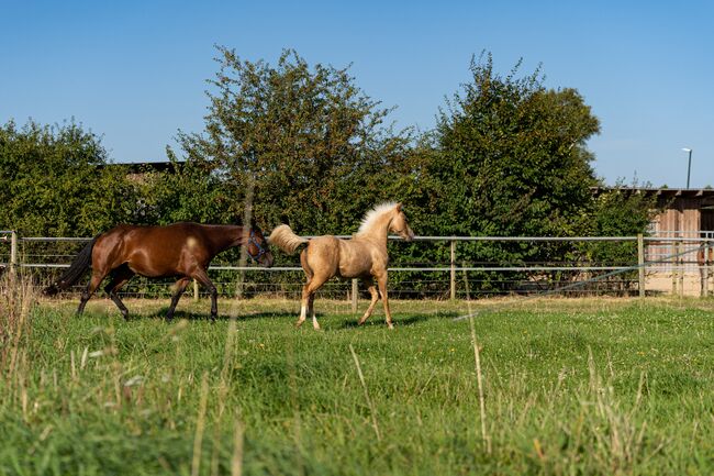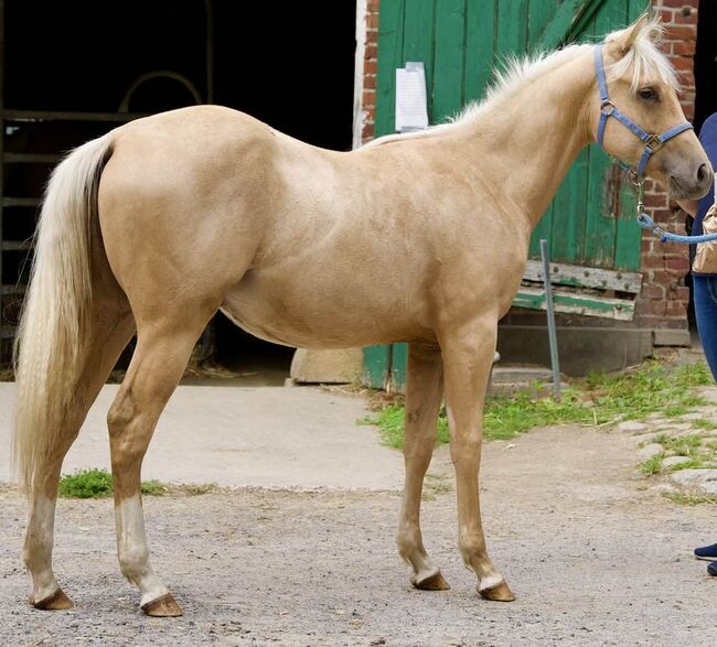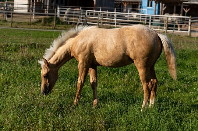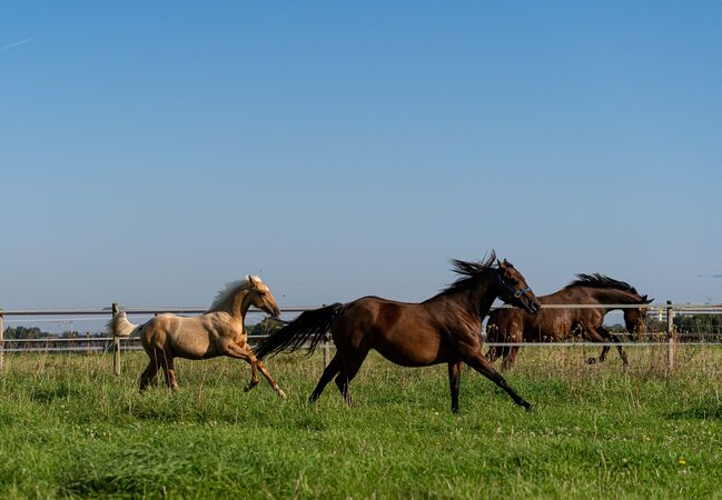 Bästa Quarter Horse-hingsten efter Sharp Dressed Shiner - Plats: 59348 Lüdinghausen Smart Dressed Spook - underbar Quarter Horse hingst, född 4.2024 med en beräknad sluthöjd på 150 cm, med förstklassig stamtavla och fantastisk färg. Clark är en super mover med ett vänligt och mycket alert sinne. Han imponerar med sin öppna och intresserade natur. Han har lärt sig fölets ABC med hovvård, grooming, halterledning och artig interaktion. Hingsten har presenterats för hovslagaren var 6-8: e vecka med mindre korrigeringar. Han har avmaskats regelbundet och besökt veterinären. Unghästarna och avelsstona får det bästa höet och mycket högkvalitativt avelsmineral / foder och är ute 24/7 på betesmark, spår och asfalterade paddockar. Han växte upp i en flock med andra ston och unghästar under de första 6 månaderna och flyttade in med sin bästa kompis för uppfödning i slutet av månaden. Clark är son till den framgångsrikt visade Sharp Dressed Shiner, topphingst med avkommor för $ 70.000,00 och en direkt avkomma till Shining Spark 10 Mio. EUR Sire och Smartly Dressed, en halvsyster till Taris Designer Genes nd A Vintage Smoke med avkommor för $ 300.000,00. Clarks mor är en dotter till Best Spook efter Smart Spook 8 Mio. EUR Sire och Best Stop en Custom Chrome-dotter. På sin första tävling med 3 månaders träning efter föluppehållet placerade hon sig direkt på EWU DS Aachen 2025 1:a plats LK 1 jun Ranch Riding 75,0, 6:e LK 1 jun Western Ranch Rail, 3:e/12:e Q LK 2/1 jun Ranch Riding 72,0 / 71,0, 7:e Q LK 2/1 jun Western Ranch Rail. Modern ARC Calbar Gal med NRHA intäkter är en direkt Snapper Cal Bar, NCHA LTE $ 250.000,00 och dotterdotter till världsmästaren Be Aech Enterprise med avkommor intäkter $ 1.345.000,00. Smart Dressed Spook är betald för EWU JUPF, NRHA Germany och NRHA Euro. Går gärna till ett showhome.