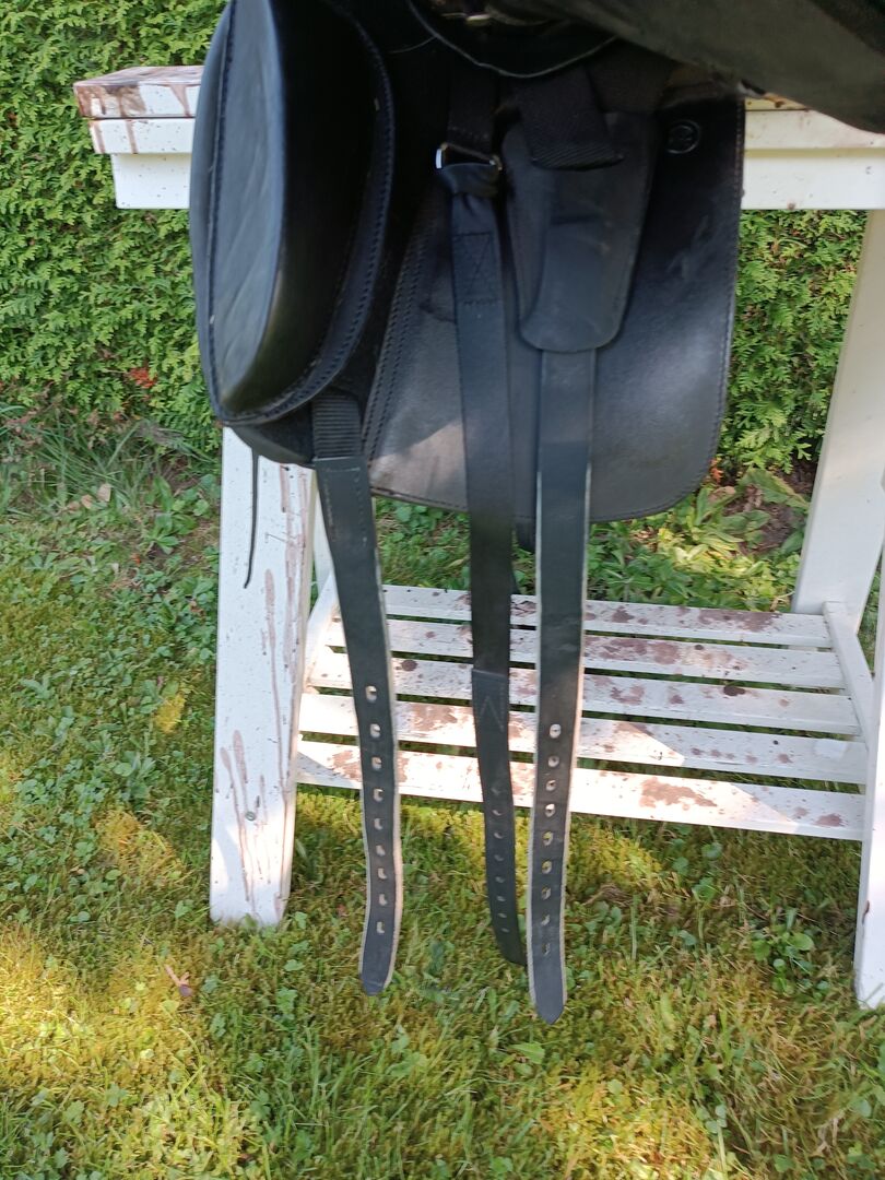 Bagual dressyrsadel 16 - Säljer min 16 tums dressyrsadel från Bagual. Superkort och även som vuxen har man gott om plats i den. Sadeln har kardborrepaneler och har för närvarande tre sadelgjordsband på varje sida. I kammaren oförändrad så medium kammarbredd med kort gulletplatta.