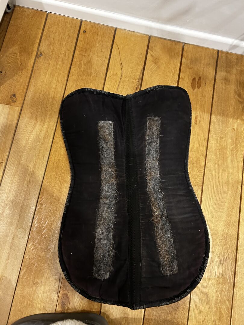Den övre delen är en formstabil pad av bomullsquiltning med en undersida av filt, fleecepadding på insidan och Sympanova-padding på ovansidan (håller sadeln på plats på padden och absorberar även tryck, vilket gör att luft kan passera igenom)