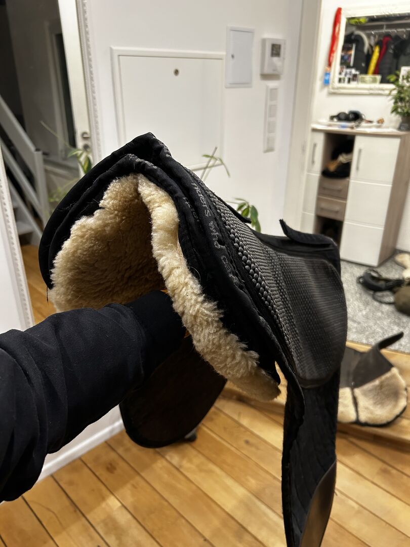 Den bakre delen av undersidan är tillverkad av fårskinn. Sadelns rörelser och tillhörande friktion i den bakre delen av hästens rygg kanaliseras in i pälsen.