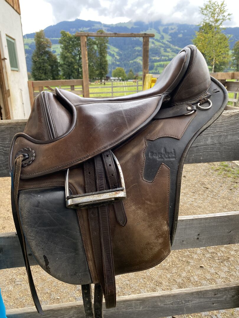 Vielseitiges, pferdefreundliches Sattelmodell aus strapazierfähigem, offenporigen Rindsleder, schmutzabweisend oberflächenbehandelt, besonders nachgiebig und anpassungsfähig auf dem Pferderücken. Ideal für Gelände- und Wanderreiter mit frei positionierbarer Steigbügelaufhängung (5 cm), flexibler V-Gurtung und verstellbaren Klettpauschen. In diesem Sattel spüren Sie die Arbeit der Muskulatur Ihres Pferdes und Bewegungen des Rückens, somit bild er die Grundlage für feineres Reiten.