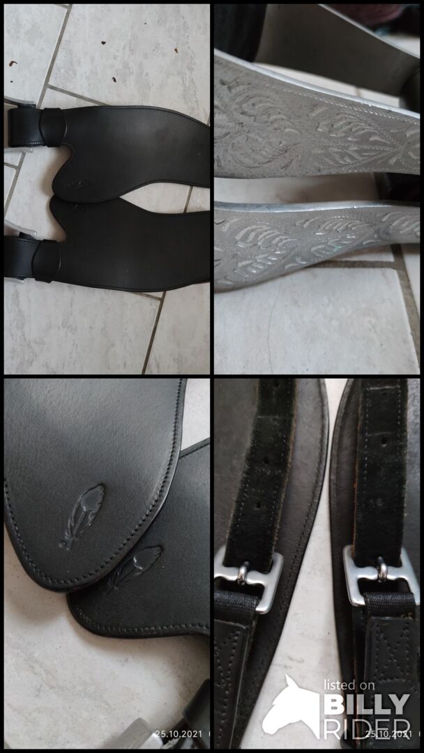 Barfotsfältare med stigbyglar - Säljs som ny BAREFOOT WESTERN FENDER SMALL i svart med Western Stirrups Aluminium, rak, graverad, svart