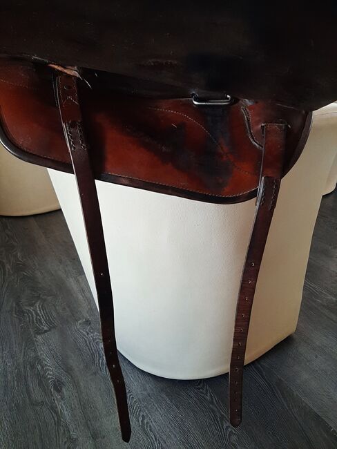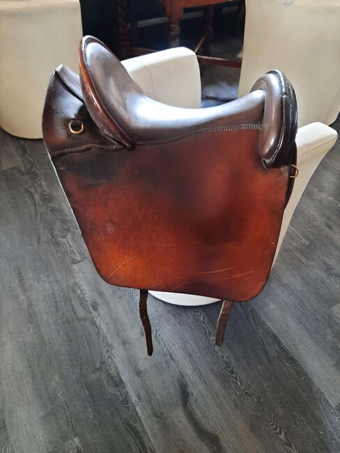 Barocksadel med formpressade paneler - Barocksadel med formpressade paneler. Upphängning med stängda stigbyglar. Mycket kort, 48 cm med 18 tums sits. Bekväm för 44 cm rumpa.