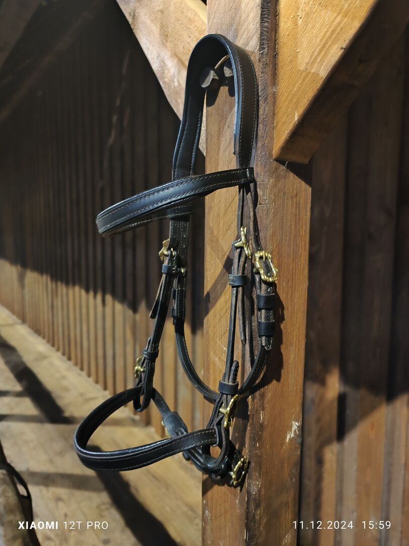 Baroque Snaffle Hillbury Calvero Arabian/Pony - Vackert barockträns Calvero med mässingsspännen, lite använt, med matchande mörkbruna läderremmar med silverspännen, märke okänt