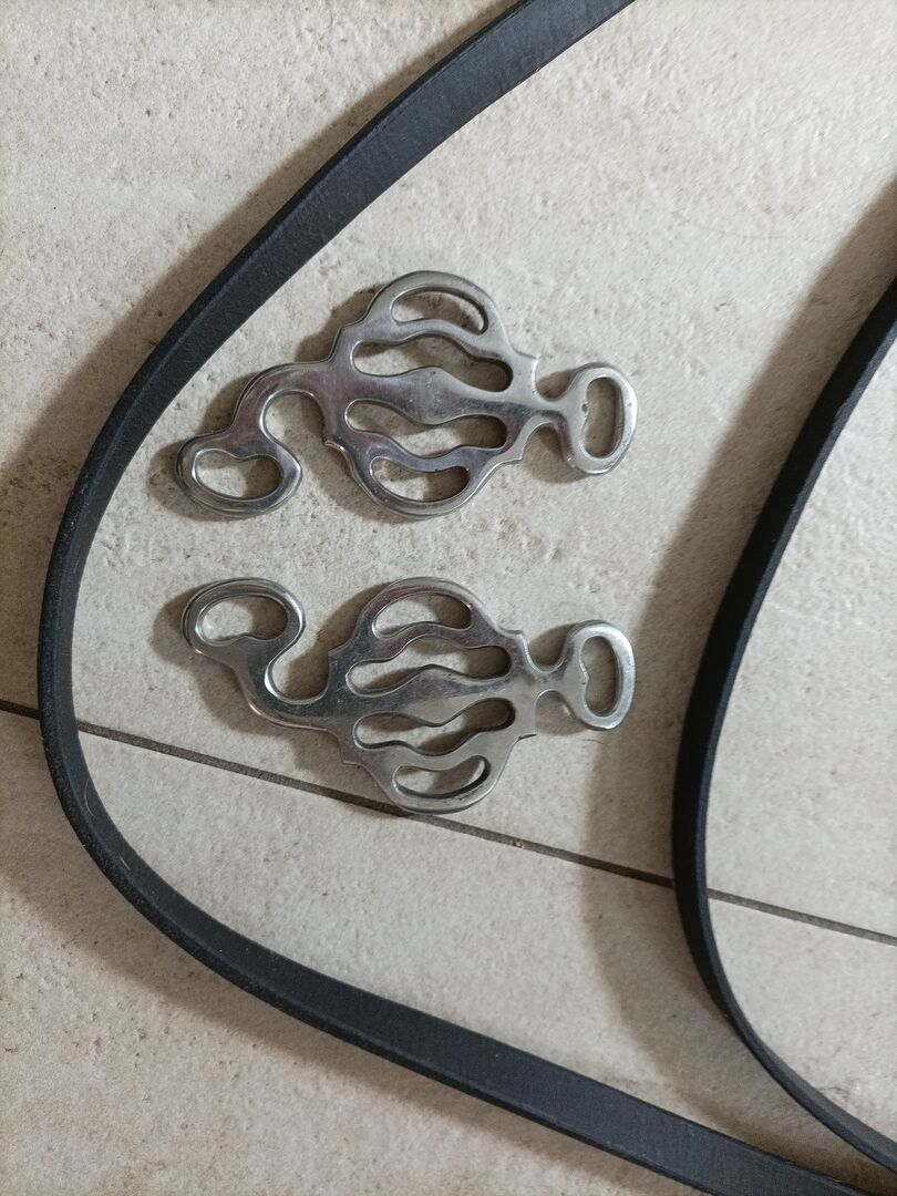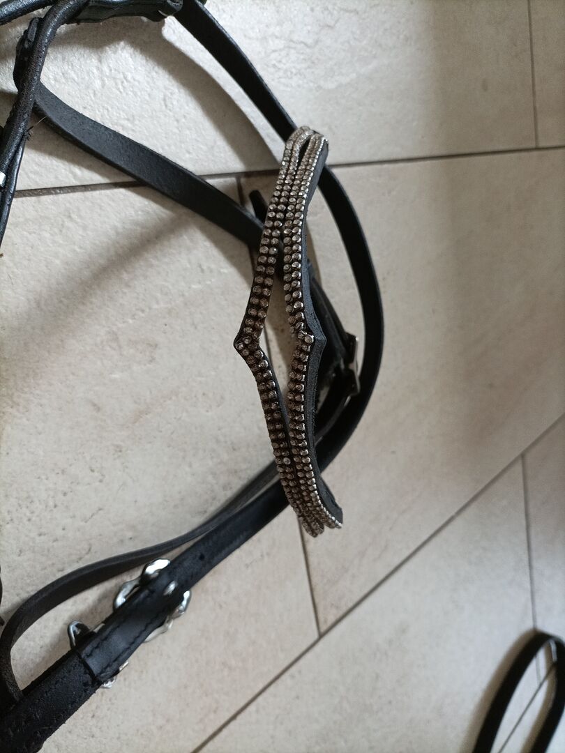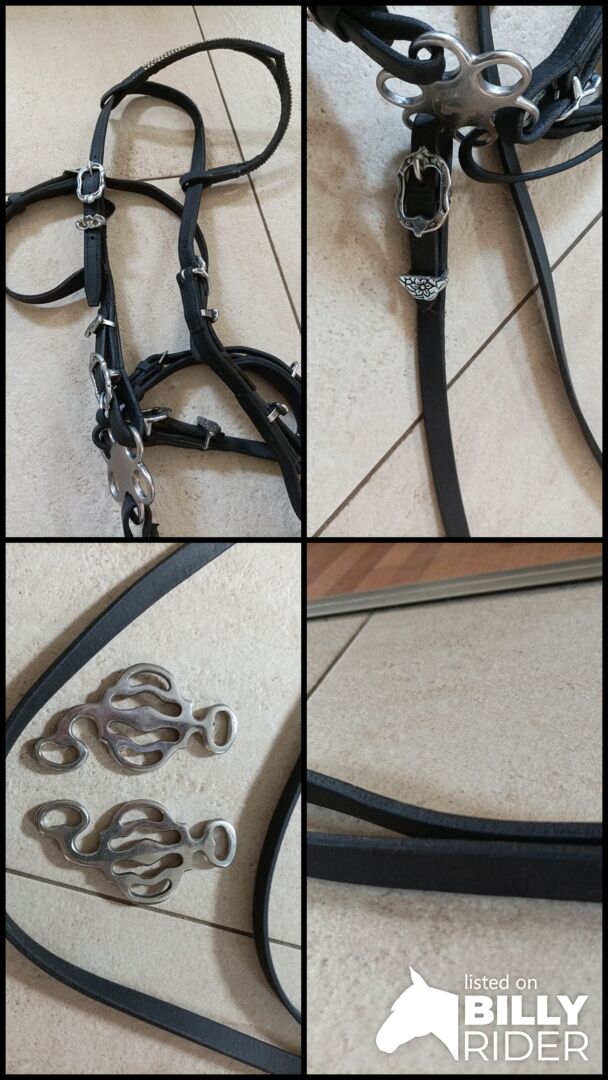 Baroque Snaffle Sidepull Hackamore - Vacker barockträns med lyckohjul och hackamore vackra långa lädertyglar och vackert pannband. Allt i barockstil med metallanslutning. Välbevarad, se bilder