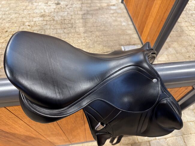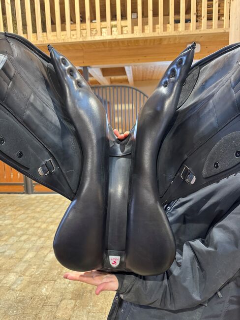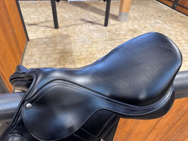 Bates Advanta hoppsadel - Mono flap-sadel med långa sadelgjordsband Sitsstorlek 17 tum bra stöd tack vare anatomiska knärullar Easy-Change kotlettplattansystem, justerbar kotlettbredd mycket väl underhållen sadel, inga defekter Nytt pris år 2023: 3 500 CHF