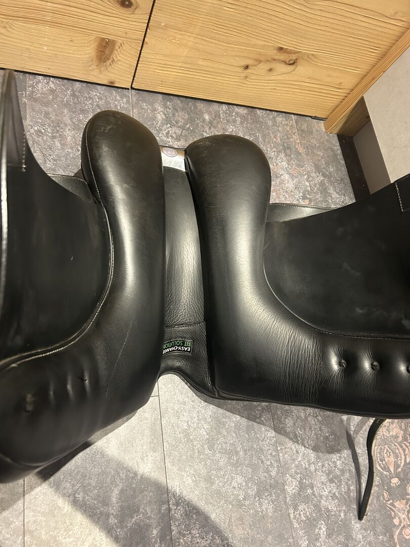 BESKRIVNING FRÅN INTERNET: Bates Dressage Wide är speciellt utvecklad för hästar med bred rygg eller platt manke. Den kombinerar klassisk dressyrställning med modern teknik för att säkerställa ridkomfort, stabilitet och perfekt balans. Med sin djupa sits, breda paneler och exakt justerbara passform är den här sadeln idealisk för ryttare som vill njuta av dressyrarbete på högsta nivå med kraftigt byggda hästar.