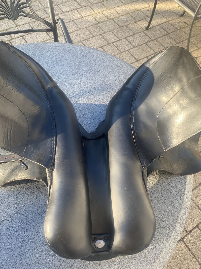 Jag köpte sadeln som jag använde när jag skolade in min unghäst förra året och den är i perfekt skick. Den var verkligen väl lämpad för detta ändamål, eftersom den kan anpassas till hästen med bara några få steg. Sadeln fungerar med Easy Change System från Wintec. Detta innebär att matstrupsskivan kan ändras individuellt för hästen, vilket är mycket värdefullt om hästen förväntas förändras. Sitsen är 17 tum.