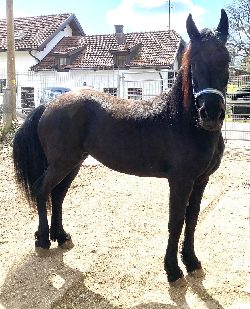Beauty Gelina söker efter ett ställe att bo på - Det 7-åriga arabo-friesiska stoet Gelina är till salu - ett vackert, känsligt sto med mycket karisma och utvecklingspotential. Träningsförhållande: ingen föl ABC och rå. Födelsedatum: 15.5.2018, Arabiskt blodprocent: 29,69%, Mankhöjd: ca 157 cm.