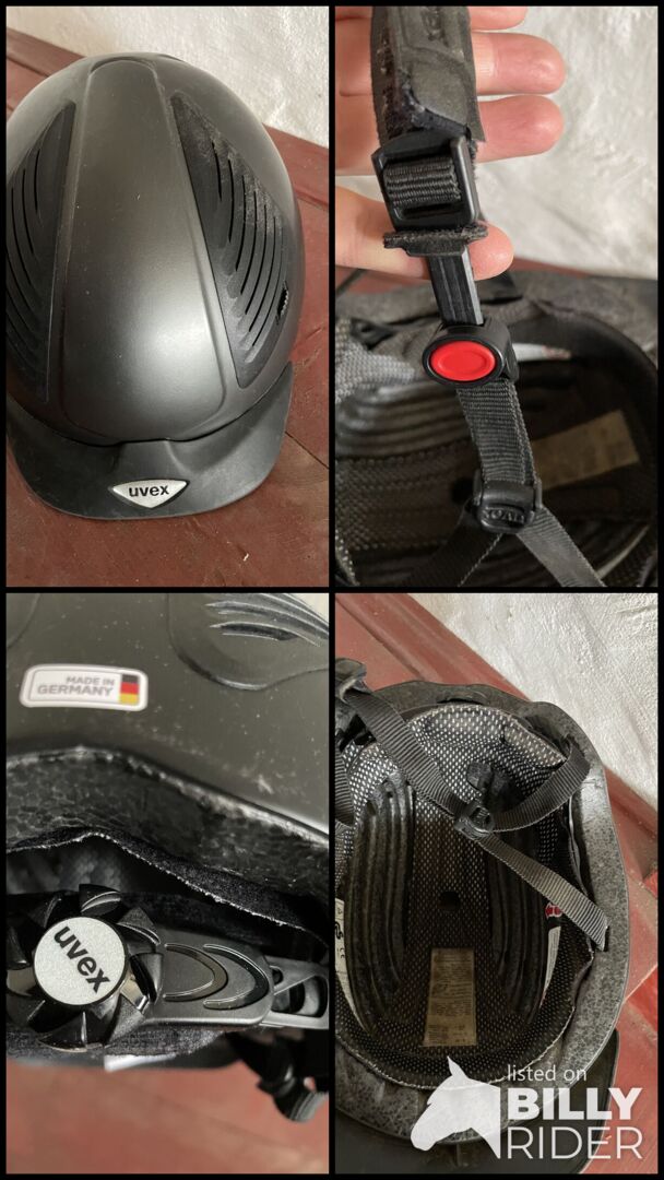 begagnad, olycksfri UVEX exxential ridhjälm, S-M - Här erbjuds en av de populära UVEX exxential ridhjälmarna till salu. Hjälmen är olycksfri. Hjälmen har låg vikt och bra komfort. Stora ventilationsinsatser ger utmärkt luftcirkulation, medan visiret skyddar ögonen från regn/solsken.