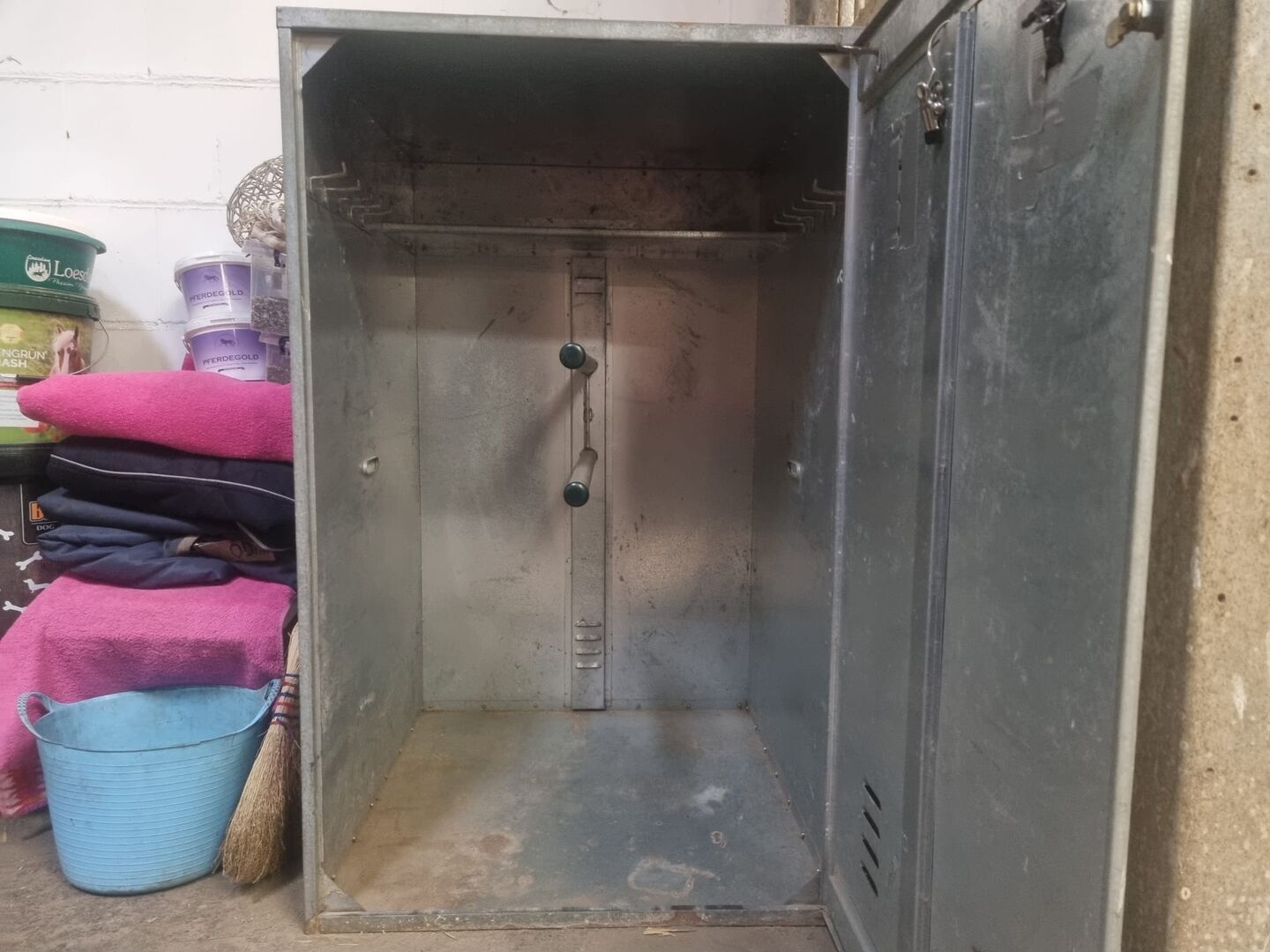 Begagnat sadelskåp av metall - Jag erbjuder ett begagnat sadelskåp i metall.