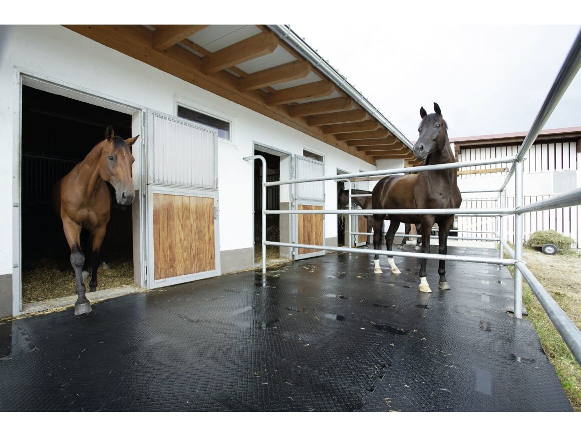 Mindre strö minskar också dammbelastningen. Det fasta, vulkaniserade gummit blir inte mättat. Detta säkerställer optimal hygien med god ströhantering. Klimatet i stallet förbättras avsevärt.