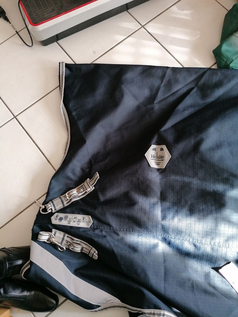 Betesfilt för utomhusbruk Felix Bühler 165cm svart - Jag ger bort detta täcke eftersom det inte sitter bra på min häst. Det är inte lämpligt för hästar med en djup hals. Det öppnade sig alltid framtill. Kardborreband skulle förmodligen behöva förnyas. Har använts i mindre än 3 månader. NP 149 € frakt och insamling möjlig