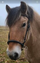Bitlös träns - Jag erbjuder en lite använd träns utan bett med ett kors under hakan för att påverka nosryggen.