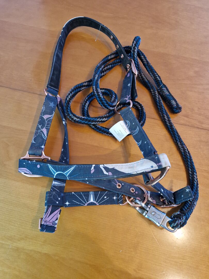 Blå grimma med matchande rep - Jag erbjuder en grimma i mycket gott skick i blått med matchande rep.