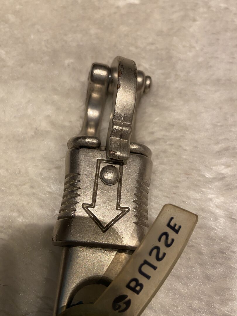 Blå rosa stickat - Jag säljer ett blått rosa rep med panikkrok.