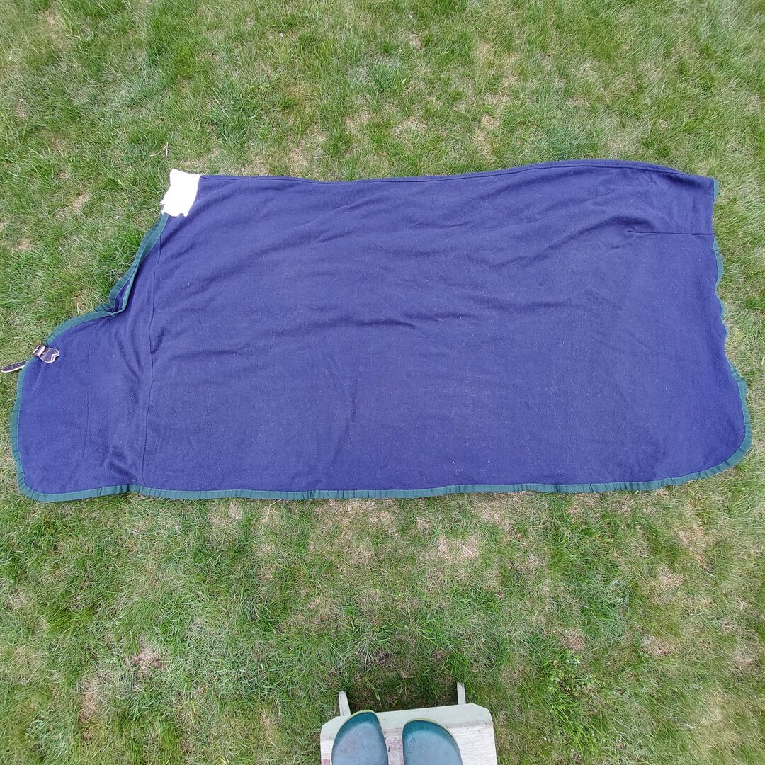 Blå svettmatta storlek 155cm med mankhöjdskudde - Till salu svettmatta i storlek 155cm. Färg: blågrön. Den har ett bröstspänne och en mankudde.