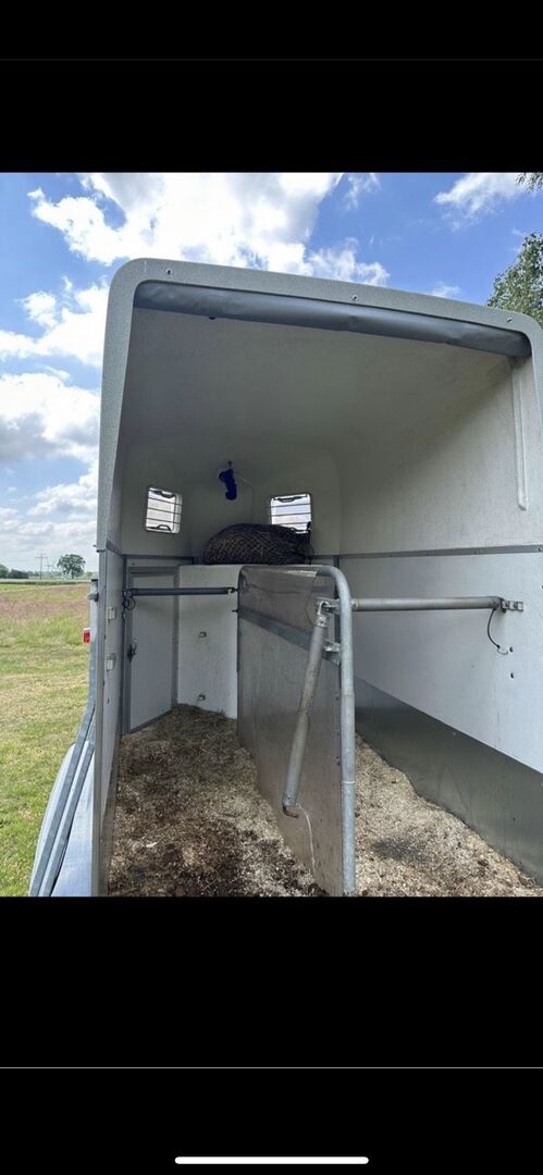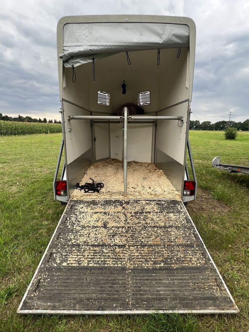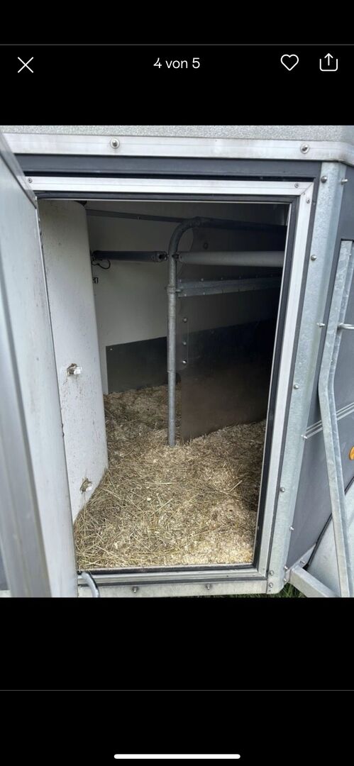 Jag skulle vilja sälja mitt hästsläp med låsbart tackrum. Priset är naturligtvis förhandlingsbart och jag är också glad att sänka priset om någon är allvarligt intresserad. Om trailern : EZ 03/2004 TÜV till 11/24 (förra gången passerade den tüv utan några defekter). Tomvikt 546kg/totalvikt 2000kg, mycket praktiskt eftersom den är lätt. Den har nytt gummi på rampen, ett nytt golv och släpvagnen har återförseglats. Den har ett trägolv, har alltid rengjorts efter användning och jag har alltid tagit väl hand om den. Naturligtvis har den också åldersrelaterade tecken på användning, vilket är oundvikligt med tanke på dess ålder och avsedda användning. Den är dock i gott skick.