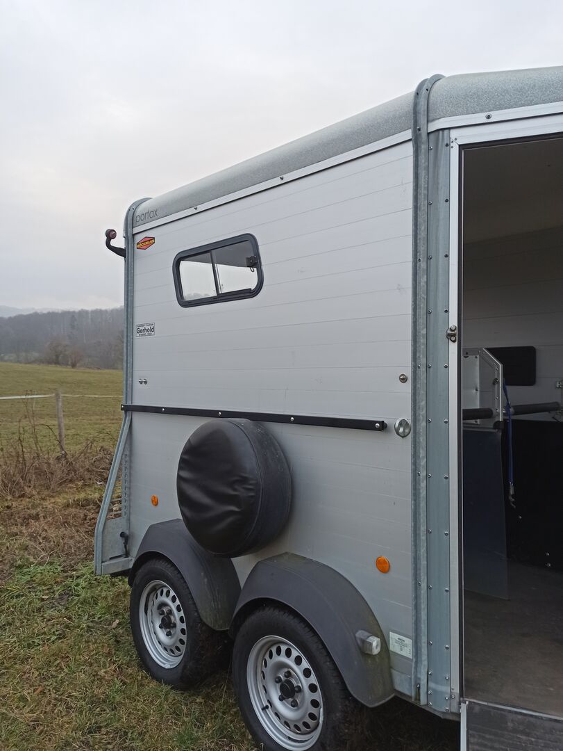 Böckmann Portax frontutgång i aluminium - Hästvagn i aluminium i gott skick, med sadelkammare, avtagbar hingstvägg och gångjärnsdörrar i vagnen. 2400 kg totalvikt Privat försäljning