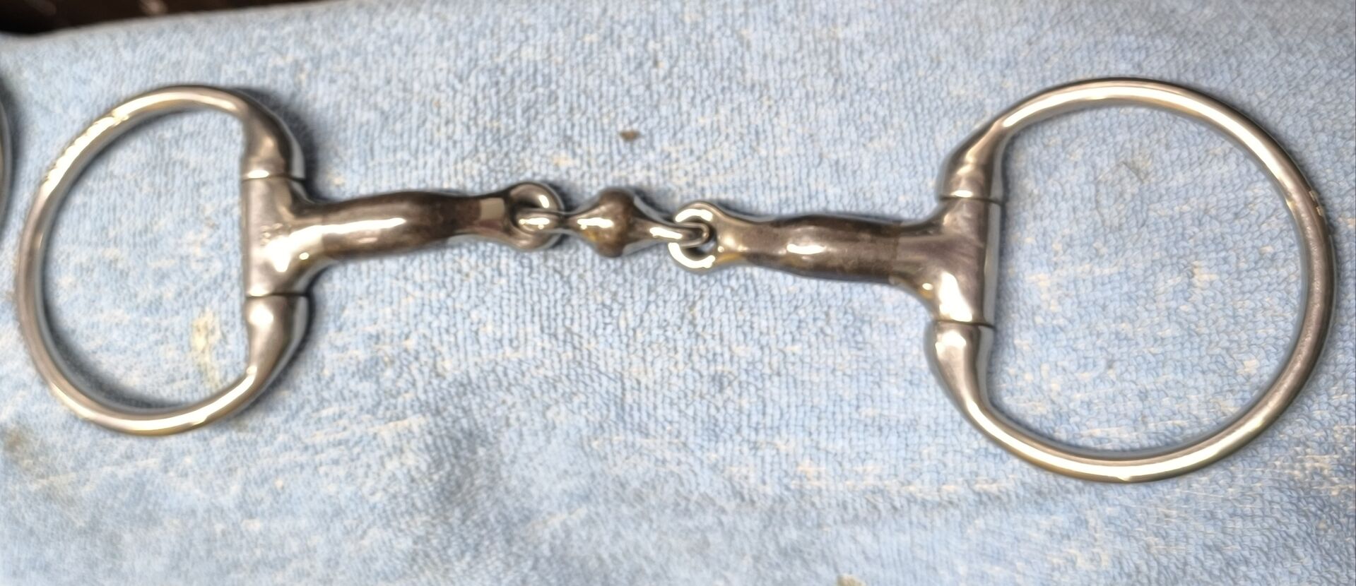Bombers bit oliv huvud "Lock-up" elliptisk / dubbelbruten 135mm - Bombers bit oliv huvud "Lock-up" elliptisk / dubbelbruten 135mm Kindstycke Eggbutt kindstycke förhindrar att läpparna kläms och att bettet dras genom munnen. Bettet är lämpligt för hästar som trycker bort bettet med tungan. Det ger bättre balans och kontroll. Trycket koncentreras till ett mindre område och sänker huvudet. Bomberbett formas, svetsas och poleras för hand. När det söta järnet kommer i kontakt med fukt börjar en oxidationsprocess, och den smak som uppstår stimulerar hästens salivproduktion och gör att den lättare accepterar bettet. Denna process ändrar den typiska blå färgen till en brungrå. Om ett Bomber-bett inte används under en längre tid kan de missfärgade områdena torkas av med ett rengöringsmedel eller en fuktig trasa och eventuell rost kan enkelt avlägsnas på detta sätt.
