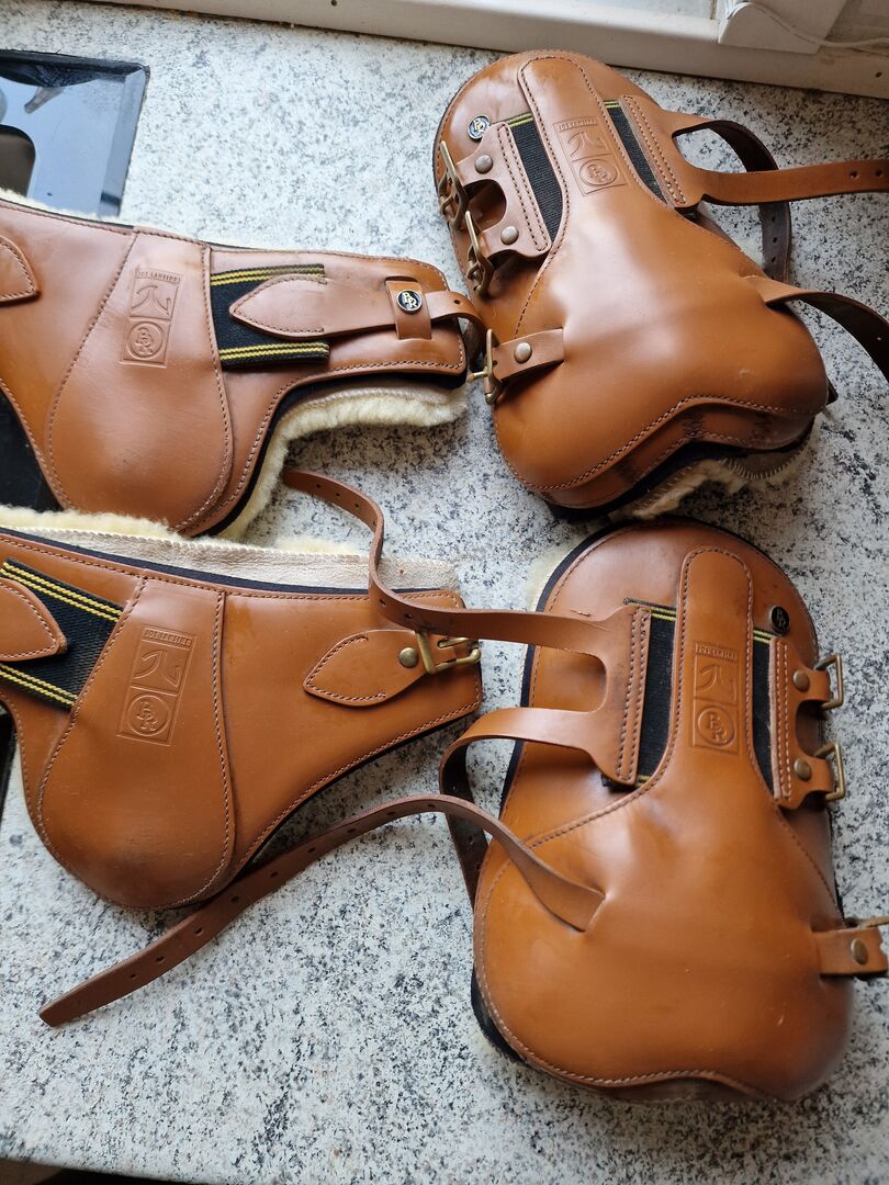 BR Jos Lansink Jumping damasker Christ lammskinn senskydd strike kepsar set - Jag säljer dessa knappt använda och mycket snygga spats från BR. De passar WB och VB, men benen på WB får inte vara för tjocka. Annars kan man klippa bort lammskinnen så passar de alla. Nytt pris var 189 Euro