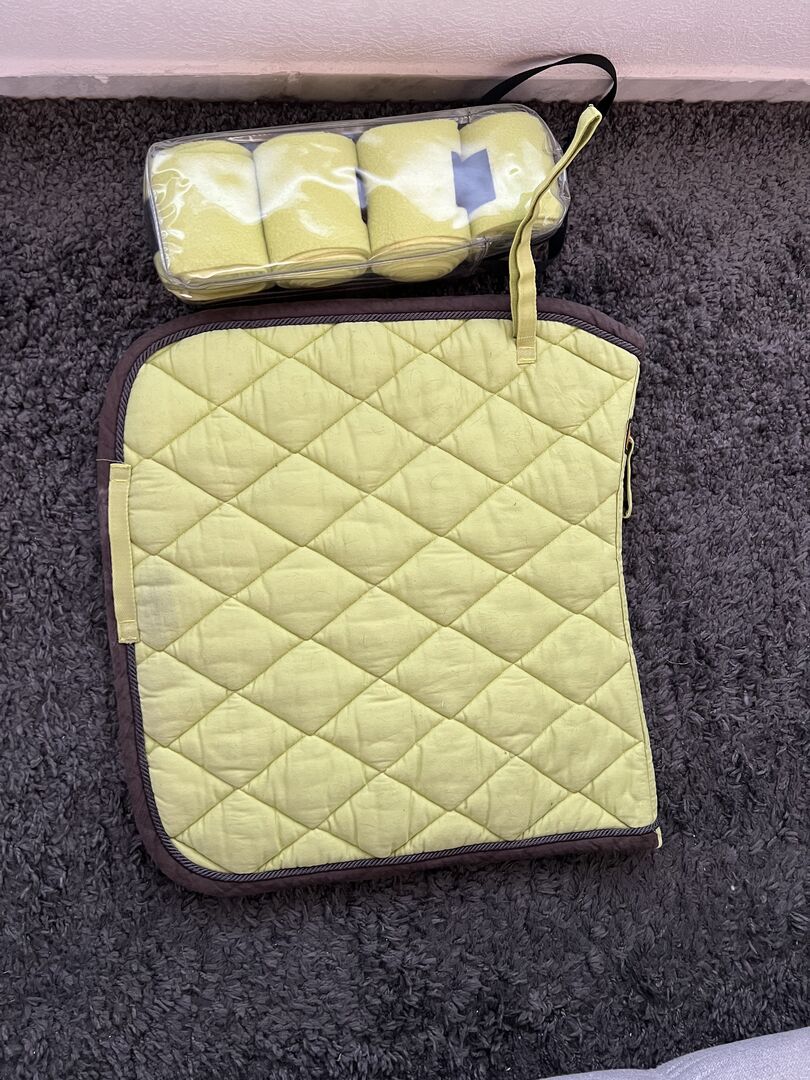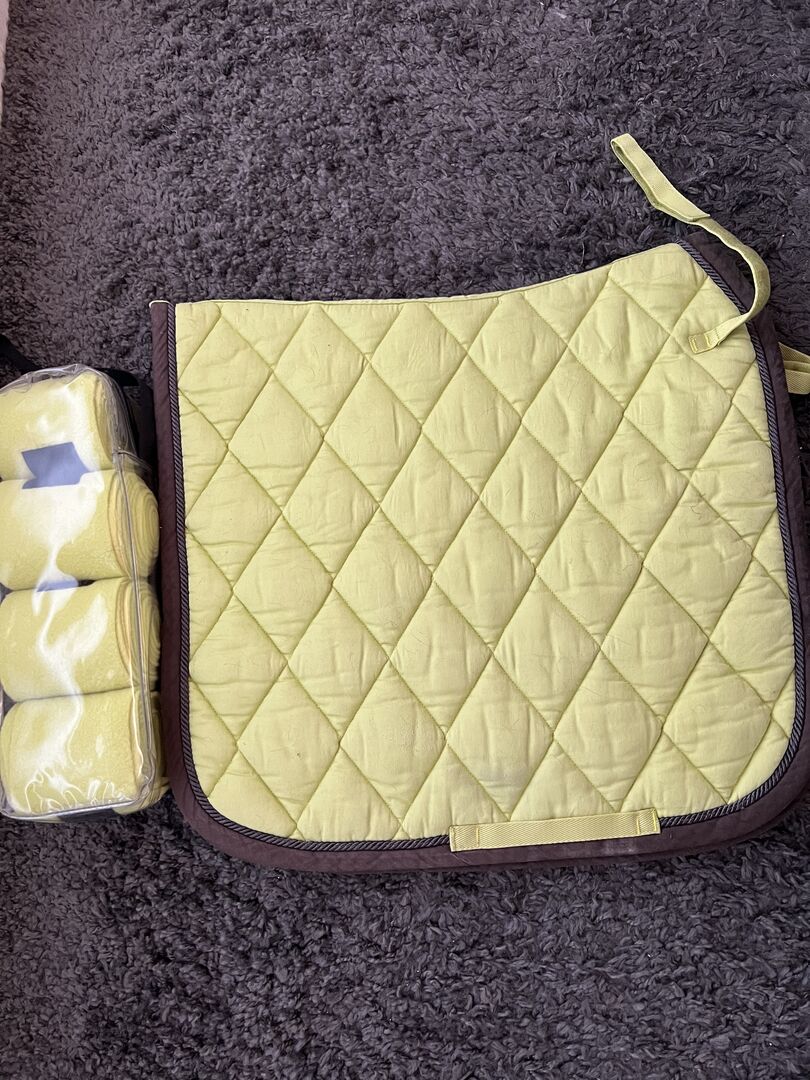 BR-set i fina färger, sadelunderlägget användes oftare än bandagen. Vänligen se bilder för skick. Frakt möjlig - kostnaderna bärs av köparen. Rabatt möjlig vid flera köp. Privat försäljning - ingen retur eller garanti