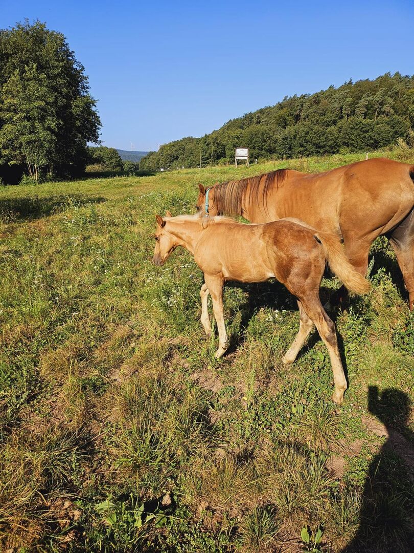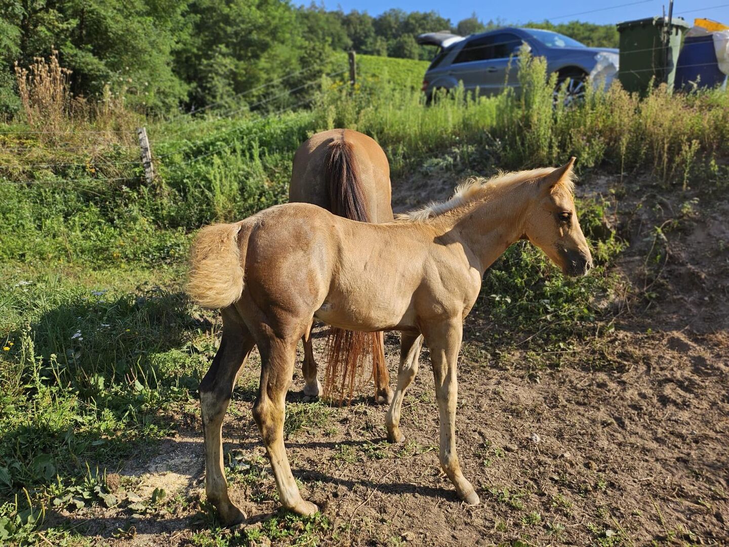 Bra avkomma efter Quarter Horse-hingsten Hollys Electricspark - Plats: 63911 Klingenberg am Main Vacker dotter till den framgångsrikt visade Quarter Horse-hingsten Hollys Electricspark (LTE på över 77.000 $, NRHA Futurity Champion Level 2, 2 gånger Futurity Champion Open USA etc.) till salu. Hon föddes 6.2024 och kommer att ha en beräknad slutlig höjd på 148 till 150 cm. Holly är ett mycket charmigt sto i guldpalomino. Öppensinnad, människoorienterad, sällskaplig och ivrig att lära sig. Hon har en korrekt exteriör och är frisk. Fölet kommer att växa upp i en flock med andra föl i samma ålder. Hon är vaccinerad och avmaskad enligt sin ålder och känner hovslagaren och fölet 1x1. Hollys mamma är en dotterdotter till Hollywood Dun It/Topsail Whiz och har redan producerat flera bra föl, inklusive Open Futurity Champion etc. Alla föl efter detta sto och hingst är en dröm i träning. Det skulle vara fantastiskt om hon kunde placeras i händer som kan stödja henne och visa hennes potential på utställningar. Men hon kommer inte heller att göra dig besviken som en fritidskompis. To the seller's offerlaunch