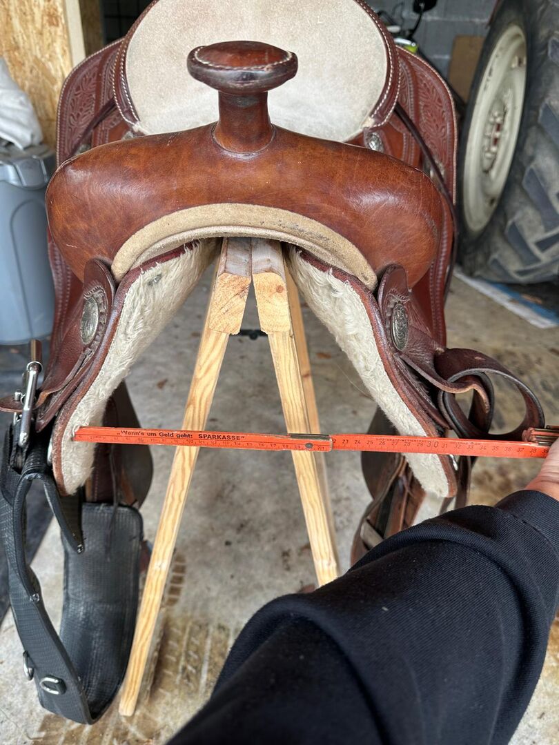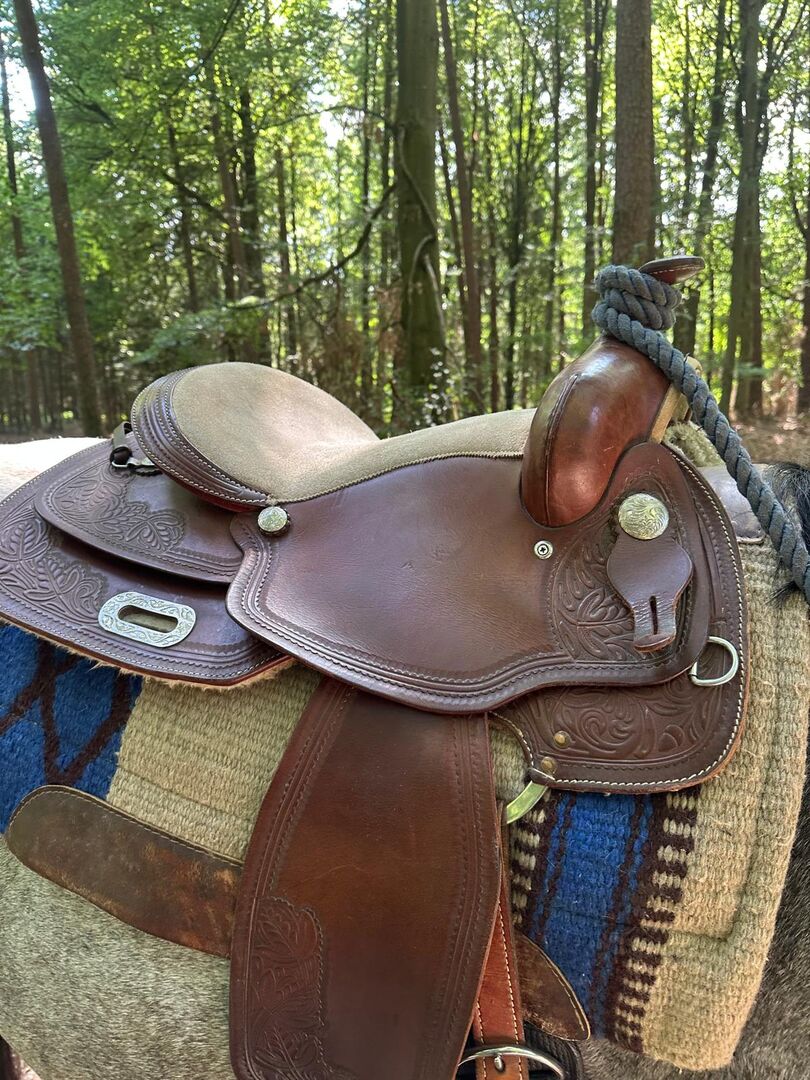 Vi säljer en westernsadel för breda hästar. Den användes senast på en ung Noriker som nu har vuxit ur den.