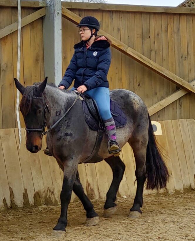 Hon älskar att rida och är alltid lätt att hantera, särskilt med äldre barn.