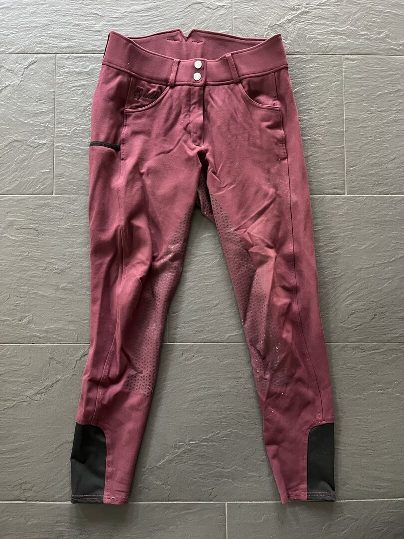 Breeches Grip Gr.40 som ny - Vinröda ridbyxor med hel sits och grepp Endast använda 2 gånger Mörkare än på bilderna Med ficka för mobiltelefon Högre midjeband Företaget "Equilibre" från Krämer